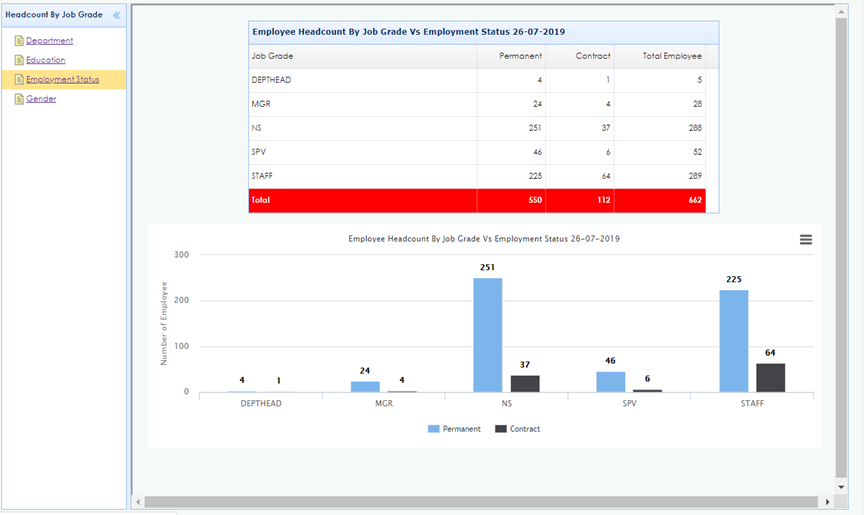 Employee Headcount By Job Grade